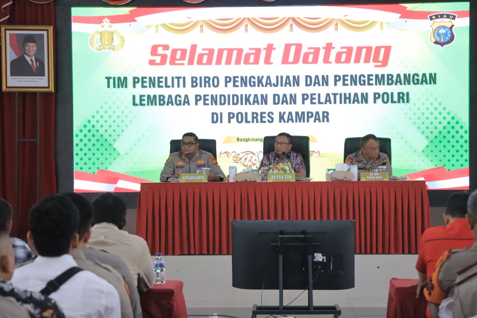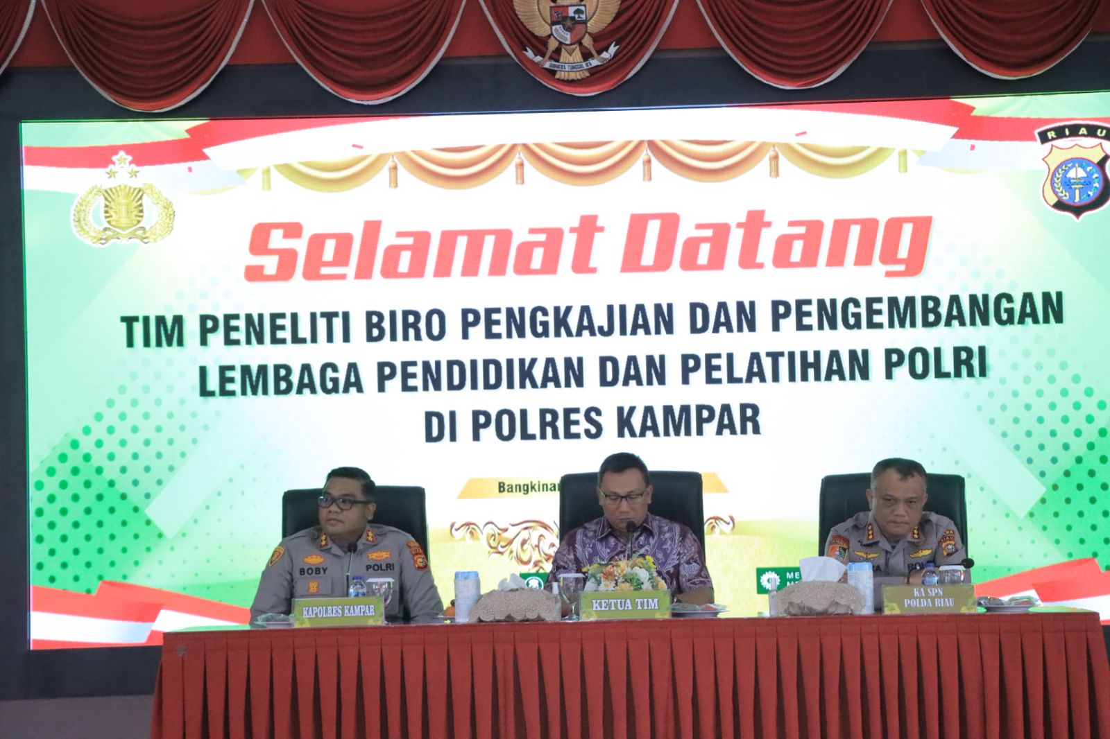 “Kepada Tim Peneliti Lemdiklat Polri, kami ucapkan terima kasih atas kehadirannya di Polres Kampar. Semoga kegiatan ini berjalan lancar dan memberikan hasil yang bermanfaat bagi peningkatan kualitas SDM Polri ke depan,” pungkas Kapolres Kampar.